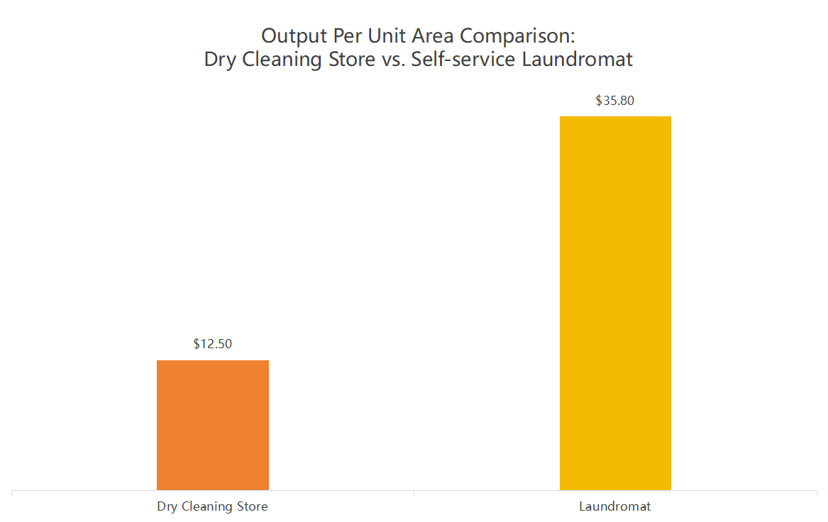 Samoposluživanje praonica rublja : 35,8 dolara po kvadratnom metru (10.750 dolara mjesečni prihod za trgovinu od 30 kvadrata)