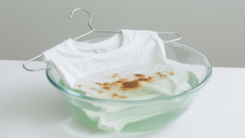 Nanesite sredstvo za uklanjanje mrlja na mrlju → temeljito namočite odjeću u otopini praška za čišćenje.