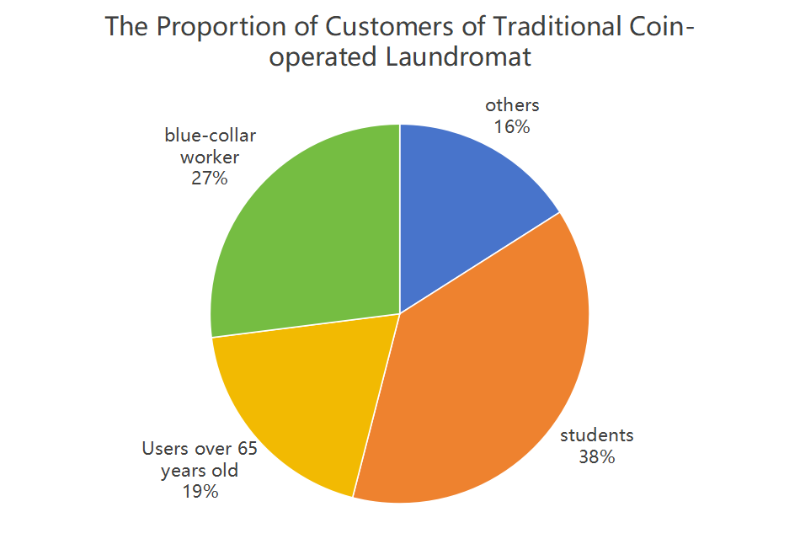 Tradicionalna praonica na kovanice suha račun s za 42 posto globalnog tržišta samoposluživanja, pri čemu studenti čine 38 posto (prema Američkom udruženju praonica rublja), zaposlenici (27 posto) i stariji korisnici (19 posto stariji od 65 godina).